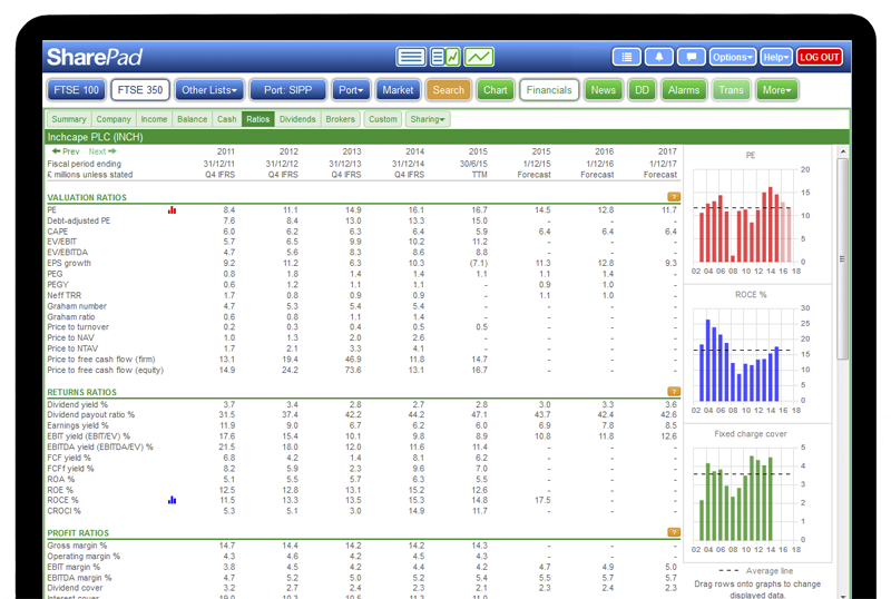 Investment ratios help you analyse a company's growth potential, performance, quality, financial stability and valuation. ShareScope provides a huge range of investment ratios with history going back over 20 years. Ratios are organised into categories in a dedicated view in ShareScope.