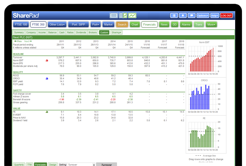With up to 20 years' history for each share, you can analyse performance over multiple market cycles - not just the latest bull market. You'll get full financial statements for all UK and US companies including interims, trailing 12 months and forecasts even in the basic package. Drag any item onto a bar chart to help spot trends and cycles.